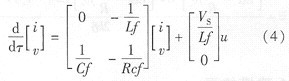 取電感電流i和電容電壓v為狀態(tài)變量,應(yīng)用KvL和KcL(基爾霍夫電壓和電流定律),可得開關(guān)管導(dǎo)通時(shí)的微分方程: