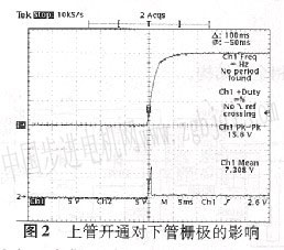 由于是空載工作,工作電流不到1 A,在對(duì)原理圖、PcB布線及損壞部分測(cè)試后,我們得出如下判斷:1)功率器件損壞是由于橋臂直通導(dǎo)致;2)輸入端有互鎖,故障與IH2110以前電路無(wú)關(guān);3)空載工作電流小,沒(méi)有由于di/dt帶來(lái)的負(fù)過(guò)沖及功率器件過(guò)壓擊穿問(wèn)題?v上分析,我們將問(wèn)題共同指向dv/dt。