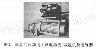 電動(dòng)門(mén)驅(qū)動(dòng)電機(jī)采用自主開(kāi)發(fā)的一種高壓稀土永磁無(wú)刷電動(dòng)機(jī)及其通用控制器,如圖2所示。無(wú)刷電動(dòng)機(jī)額定功率1. 5 kw,額定轉(zhuǎn)速1 800r/min,控制器輸入電壓為220 V(交流)。系統(tǒng)的外部