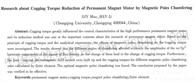 削角磁極抑制永磁電動機齒槽轉(zhuǎn)矩的研究