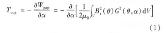 根據(jù)虛功原理,忽略鐵心和永磁體中的能量變化,則齒槽轉(zhuǎn)矩可以表示為: