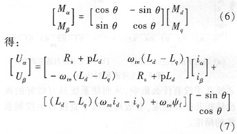 式中:p為微分算子。由α-β坐標(biāo)系(靜止坐標(biāo)系]和d—q坐標(biāo)系的轉(zhuǎn)換關(guān)系: