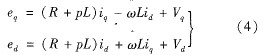 將上圖中各分量寫為適量形式,則可以得到如下的電壓方程表達式: