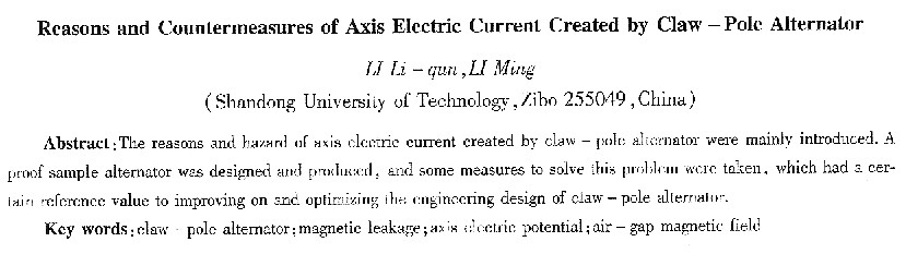 摘要:介紹了爪極發(fā)電機(jī)軸電流產(chǎn)生的原因及其危害,提出了解決這一問題的方法,并通過樣機(jī)進(jìn)行了驗(yàn)證,對改進(jìn)和優(yōu)化爪極發(fā)電機(jī)的工程設(shè)計(jì)具有一定的參考價值: