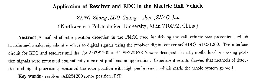 關(guān)鍵詞:旋轉(zhuǎn)變壓器;AD2S1200;轉(zhuǎn)子位置;數(shù)字信號(hào)處理器