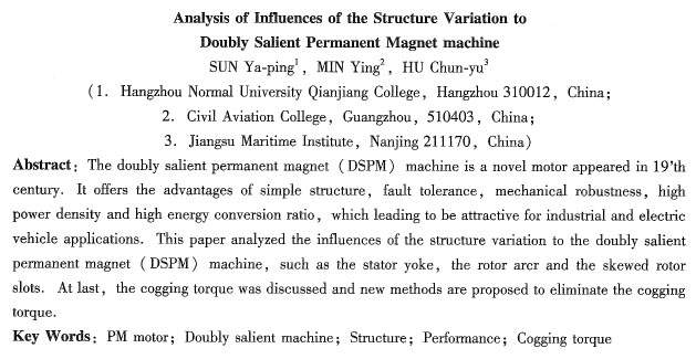 關(guān)鍵詞:永磁電機;雙凸極電機;結(jié)構(gòu);性能;定位力矩