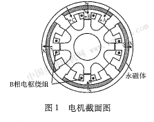 圖1所示為12/8永磁雙凸極電機截面圖。雙凸極電機在結(jié)構(gòu)上和開關(guān)磁阻電機相似,其定轉(zhuǎn)子均為凸極齒槽結(jié)構(gòu),由硅鋼片疊壓而成,采用集中繞組。