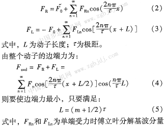 根據(jù)公式(1),可以通過降邊端力和齒槽力的方法減小磁阻力,因此,在不考慮齒槽力影響的情況下,根據(jù)文獻(xiàn)[3],當(dāng)動子的長度為2或2個極距以上,動子在兩個邊端受到的力互不影響,可以看成是兩個半無限大的動子鐵心單端受力的合成結(jié)果,即可以看成是左端力FL和右端力FR的合力。左右兩端受到的力傅立葉表達(dá)式為: