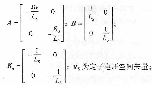us 為定子電壓空間矢量;is為定子電流空間矢量;Rs定子繞組相電阻Ls為等效同步電感;es為感應(yīng)電動勢空間矢量;ψf為永磁體勵磁磁鏈。