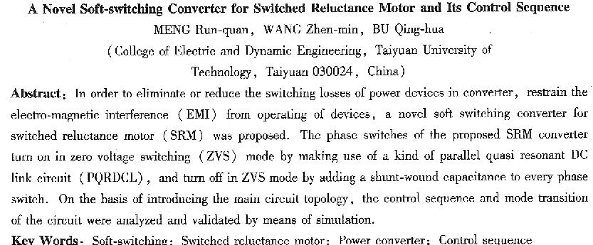 關(guān)鍵詞:軟開關(guān);開關(guān)磁阻電機(jī);功率變換器;控制時(shí)序