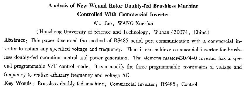 關(guān)鍵詞:無刷雙饋電機(jī);商用變頻器;RS485;控制方法