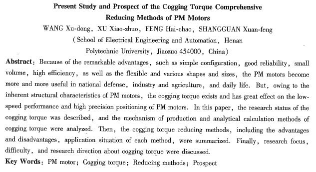 關(guān)鍵詞:永磁電機(jī);齒槽轉(zhuǎn)矩;抑制方法;展望