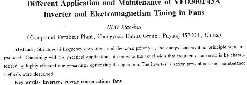 FD300F43A變頻器與電磁調(diào)速在風(fēng)機(jī)上的不同應(yīng)用及維護(hù)
