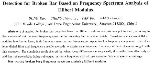 關(guān)鍵詞:轉(zhuǎn)子斷條;頻譜分析;Hilhert模量