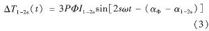 ΔT1-2s(t)波動,進(jìn)一步引起基波磁通的相位發(fā)生相應(yīng)的變化,如式(4):
