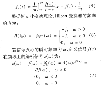 Hilben變換是幅頻特性為1的全通濾波器。信號f(t)通過Hilbm變換器后,其負(fù)頻率成分做+π/2的相移,而正頻率部分做一π/2的相移。z(ω)僅包含正頻率成分,從而可以降低信號的抽樣率。