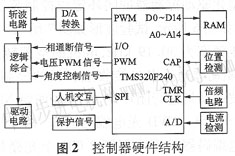 開關(guān)磁阻電動機(jī)控制器是電機(jī)調(diào)速運(yùn)行的中樞,它綜合處理各種位置、速度等給定信號,給出相應(yīng)的相通斷、系統(tǒng)保護(hù)、顯示等信號。且根據(jù)鍵盤輸入的指令如起動、停止、速度設(shè)置等和傳感器提供的各種信號(如位置、電流等)輸出相通斷信號,驅(qū)動主開關(guān)管的開通與關(guān)斷,驅(qū)使電動機(jī)轉(zhuǎn)子轉(zhuǎn)動。tms320f240芯片是ti公司專門針對電機(jī)、逆變器、機(jī)器人等控制而設(shè)計的,它配置了完善的外圍設(shè)備,且可設(shè)置六個優(yōu)先級的中斷。此款芯片在電機(jī)調(diào)速領(lǐng)域的整體來說,無論是從計算速度、精度、內(nèi)外部資源還是性價比上,都優(yōu)于傳統(tǒng)的一系列單片機(jī),所以本設(shè)計中選用tms320f40來作為控制器的cpu。