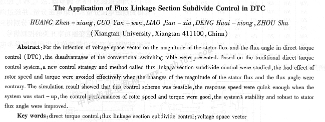 關(guān)鍵詞:直接轉(zhuǎn)矩控制;磁鏈區(qū)間細(xì)分控制:電壓矢量
