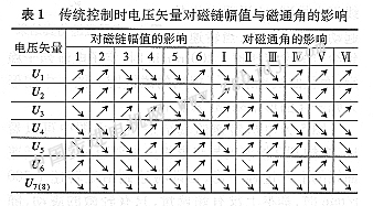 1 電壓矢量對定子磁鏈幅值和磁通角的影響