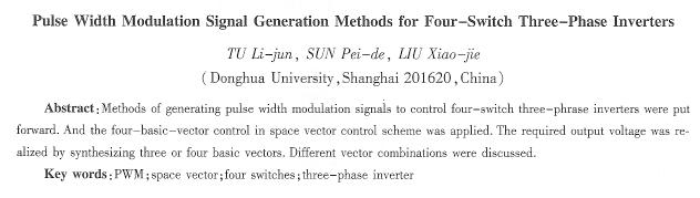 關(guān)鍵詞:pwm;空間矢量;四開關(guān);三相逆變器