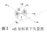 標(biāo)系的i~ⅳ區(qū)間,如圖2所示。矢量v1、v3大小相等,方向相反;v2、v4大小相等,方向相反,其幅值為前者的√3倍。