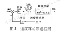 由于c值非常小,直線伺服刀架是一個(gè)小阻尼的二階系統(tǒng),其動(dòng)態(tài)響應(yīng)性能太差,表現(xiàn)為其階躍響應(yīng)超調(diào)太大和振蕩次數(shù)太多,無法實(shí)現(xiàn)對(duì)刀架的快速精確控制。為了改善伺服系統(tǒng)的動(dòng)態(tài)性能,引入位置環(huán)和速度環(huán)相結(jié)合的控制機(jī)制,速度環(huán)的原理框圖如圖2所示。