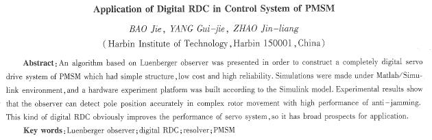 關(guān)鍵詞:隆伯格觀測(cè)器;數(shù)字軸角變換器;旋轉(zhuǎn)變壓器;永磁同步電動(dòng)機(jī)