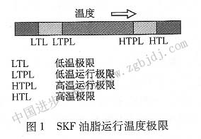 但是需要指出的是,并不是在低溫極限和高溫極限乏間的溫度范圍內(nèi),潤(rùn)滑脂都可以起到充分的潤(rùn)滑作用。因此一些廠家根據(jù)工況做出了其他的定義。SKF提出了油脂運(yùn)行溫度極限的定義(目前尚不是國(guó)際標(biāo)準(zhǔn)),見圖l,也就是在此溫度范圍內(nèi),潤(rùn)滑脂可以可靠地滿足電機(jī)軸承潤(rùn)滑的要求。超過此范圍,但是在油脂溫度極限之內(nèi)的溫度時(shí),潤(rùn)滑脂的性能表現(xiàn)不穩(wěn)定(有可能適用,也有可能不適用)。