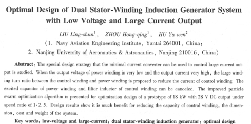 關(guān)鍵詞:低壓大電流;雙繞組感應(yīng)發(fā)電機(jī);優(yōu)化設(shè)計(jì)