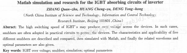 關(guān)鍵詞:IGBT過(guò)電壓;吸收電路;仿真;參數(shù)選擇