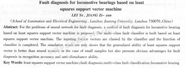 關(guān)鍵詞:最小二乘支持向量機;故障診斷;多類故障分類;機車軸承