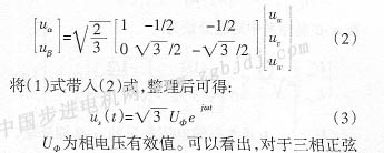 根據(jù)磁動勢和功率守恒原則,將=相電壓由三相靜止坐標系轉(zhuǎn)換到兩相靜止的α-β坐標系中,得到: