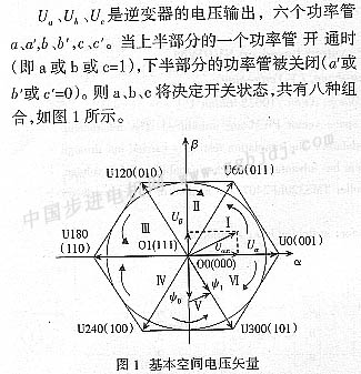 正弦脈寬調(diào)制(SPWM)已經(jīng)廣泛應(yīng)用于生活生產(chǎn)的各個領(lǐng)域,但是由于其直流電壓利用率不高而往往受到限制,空間電壓矢量脈寬調(diào)制法(SVPWM)與SPWM的方法不同,三相SPWM法是從電源的角度出發(fā),著眼于如何生成一個可以調(diào)頻調(diào)壓的三相正弦波電源;SVPWM法則是從電動機的角度出發(fā),將電源與電機看作一個整體,著眼