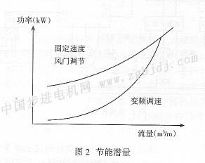 而采用變頻捌速技術后,可連續(xù)調節(jié)供氣量,將管網壓力始終維持在能滿足供氣的工作壓力上,即Pmin附近。變頻器能夠使系統(tǒng)生產的空氣流量和所需求的流量精確對應,以達到****的系統(tǒng)調整。這就意味著在同樣的壓力要求下所需的流量最小、功率最小,如圖2所示。