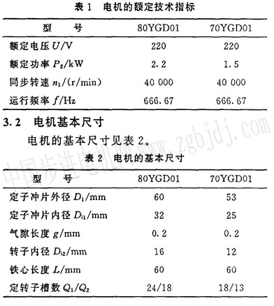兩種規(guī)格電機的額定技術(shù)指標見表1,進行電磁計算時就以此指標為基準。