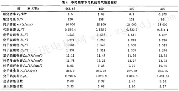 3.4不同頻率下電機的電氣性能指標