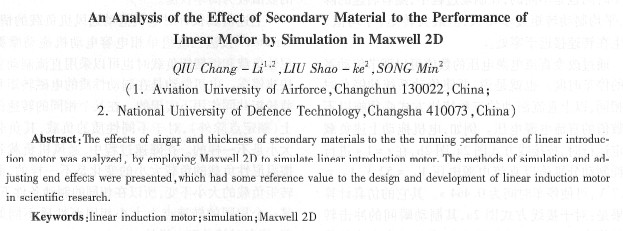 關(guān)鍵詞:直線感應電動機;仿真;Maxwell 2D