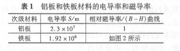 仿真過程中鋁板和鐵板材料的電導率和磁導率設(shè)置如表l所示。