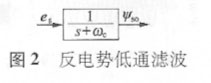 圖中:es為檢測出的反電勢(us- Ris)。將圖1中的積分環(huán)節(jié)和高通環(huán)節(jié)合并,得到一個(gè)低通環(huán)節(jié),如圖2所示。圖2表明,反電勢經(jīng)過一階低通濾波后也可以得到磁鏈的觀測值。