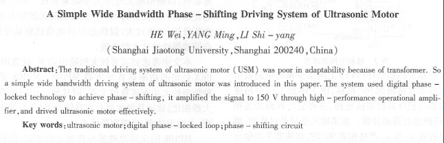 摘要:傳統(tǒng)的超聲波電動機由于升壓變壓器的存在,驅(qū)動系統(tǒng)通用性差。介紹一種簡單、寬頻帶、高性能超聲驅(qū)動系統(tǒng),該系統(tǒng)使用數(shù)字鎖相技術(shù)實現(xiàn)移相,通過高性能運放將信號放大到峰峰值150 V,能夠很好地驅(qū)動超聲波電動機,