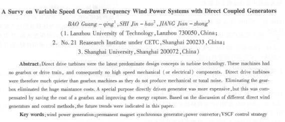 在風力發(fā)電系統(tǒng)的機電能量轉(zhuǎn)換過程中,發(fā)電機及其控制系統(tǒng)具有十分關(guān)鍵的作用,它不僅直接影響整個系統(tǒng)的性能、效率和供電質(zhì)量,而且也影響到風能吸收裝置的運行方式、效率和結(jié)構(gòu)。因此,研究適合于風電轉(zhuǎn)換的運行可靠、效率高、控制簡單及供電性能良好的發(fā)電系統(tǒng)具有重要的理論意義和應(yīng)用價值。目前,風電機組朝著高可靠性、低維護量、少組件、低成本、高集成度方向發(fā)展,傳統(tǒng)風電機組中齒輪箱的存在成為制約其進一步發(fā)展的重要因素之一。上世紀末,許多歐洲國家開展了無齒輪箱的直驅(qū)式風電機組研究,其市場份額迅速擴大,德國在2004年安裝的風電機組中就有百分之40.9采用了無齒輪箱系統(tǒng)。直驅(qū)式風電系統(tǒng)通過將風力機與發(fā)電機轉(zhuǎn)子直接耦合,機組性能得到改善: