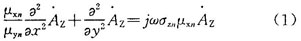 在二維磁場中,矢量磁位  的二階偏微分方程為: