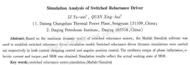 摘要:在開關(guān)磁阻電動(dòng)機(jī)非線性動(dòng)態(tài)模型基礎(chǔ)上,利用matlah/simulink軟件建立了開關(guān)磁阻電動(dòng)機(jī)調(diào)速系統(tǒng)的仿真模型,分別在電流斬波控制和角度位置控制兩種控制方式下進(jìn)行了開關(guān)磁阻電動(dòng)機(jī)調(diào)速系統(tǒng)的動(dòng)態(tài)仿真,得到了相電感、電流、轉(zhuǎn)矩和開關(guān)磁阻電動(dòng)機(jī)的合成轉(zhuǎn)矩,仿真結(jié)果反映了開關(guān)磁阻電動(dòng)機(jī)的實(shí)際工作狀況。