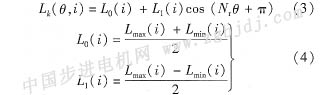 sr電動(dòng)機(jī)相電感的非線性是由繞組電流和轉(zhuǎn)子位置角的非線性決定的。利用傅里葉級(jí)數(shù)分解式,忽略高次諧波,得出相繞組電感為: