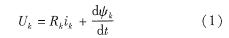 式中:uk為加于第k相繞組的電壓;rk為第k相繞組的電阻;ik為第k相繞組的電流;ψk為第k相繞組的磁鏈。一般說來,電動(dòng)機(jī)的磁鏈可用電感和電流的乘積來表示,即: