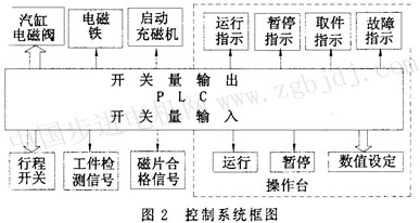作為實(shí)用產(chǎn)品要求控制系統(tǒng)操作簡單可靠且成本低。該設(shè)備控制系統(tǒng)的主要任務(wù)是按工序要求,根據(jù)汽缸行程的狀態(tài)信息和有關(guān)檢測信號,實(shí)現(xiàn)自動(dòng)充磁的任務(wù)。