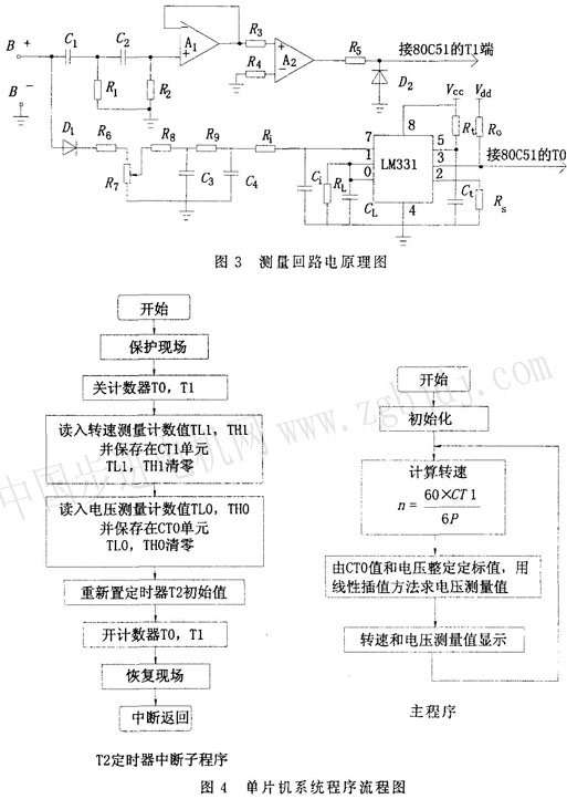 另外,將發(fā)電機(jī)輸出電壓經(jīng)低通濾波,分壓取樣和A/D轉(zhuǎn)換后,也送入測(cè)量系統(tǒng),可同時(shí)測(cè)量發(fā)電機(jī)的輸出電壓。