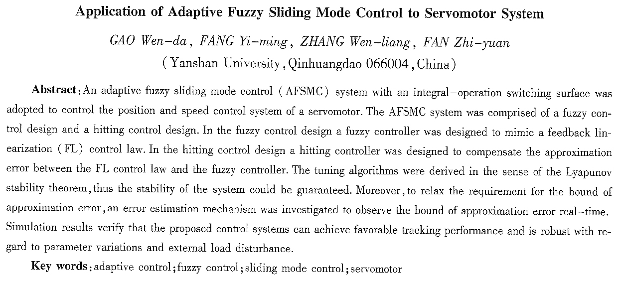 關(guān)鍵詞:自適應(yīng)控制;模糊控制;滑?刂;伺服電動機