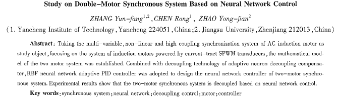 關(guān)鍵詞:同步系統(tǒng);神經(jīng)網(wǎng)絡(luò);解耦控制;電動(dòng)機(jī);控制器