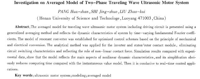 關(guān)鍵詞:超聲波電動機(jī)系統(tǒng):建模;平均值模型